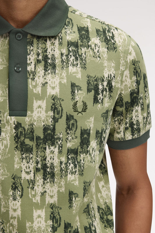 Fred Perry Abstract Print Polo Shirt Olive Mint