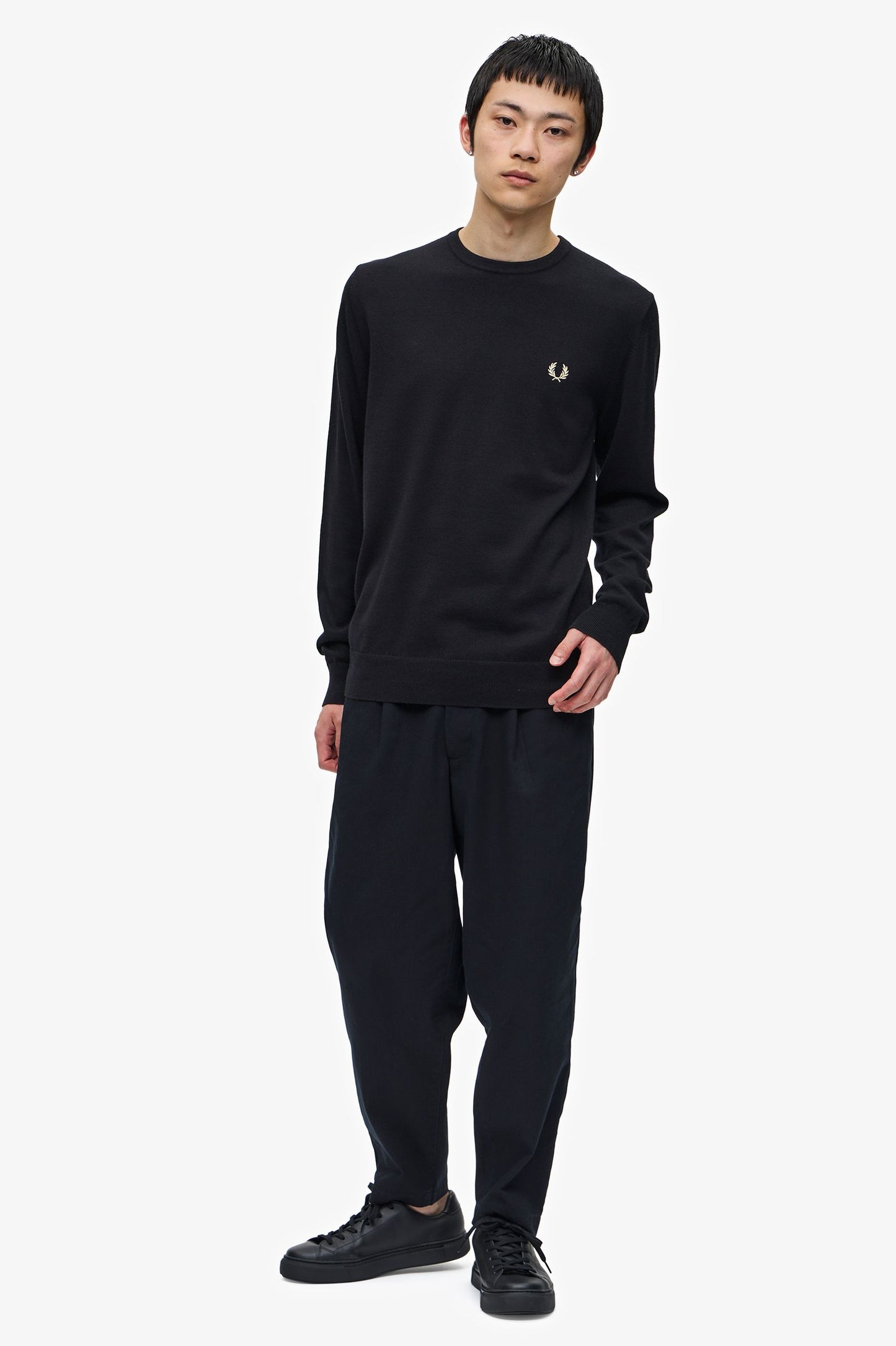 Our classic crew neck jumper is built with a blend of ethically sourced merino wool and cotton for warmth, durability, and a bit of simple luxury. Designed in signature Fred Perry colours with twin tipping inside the neck, this is a smart staple for year-round wear. For warming up on the courts or layering up on the streets.
