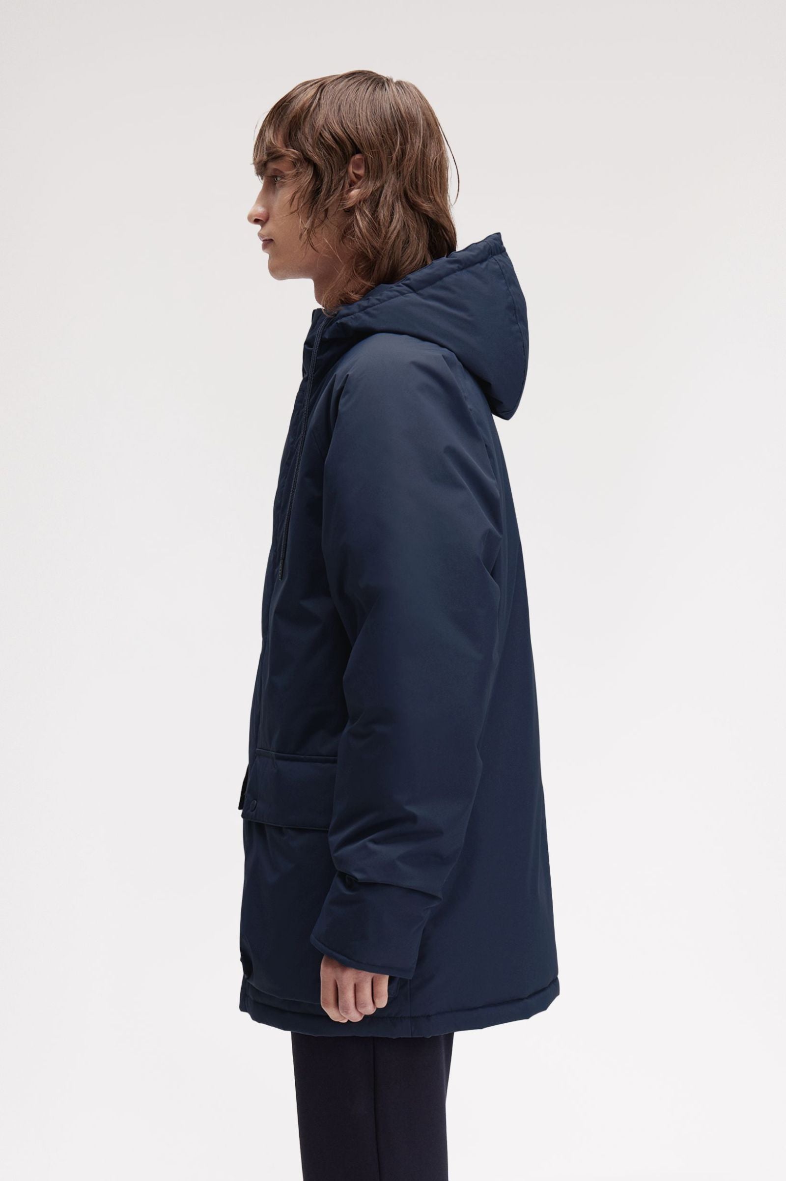 A smart-looking coat with all the functional features, our padded zip-through jacket comes with storm cuffs, packable hood, and zip conceal panel with snap fastenings to keep the wet out. A raglan sleeve is a subtle nod to our sporting heritage, and fully recycled shell and lining fabrics feel crisp, warm, and dry. A Fred Perry's essential to see you through even the worst British winter (and, let’s face it, summer).