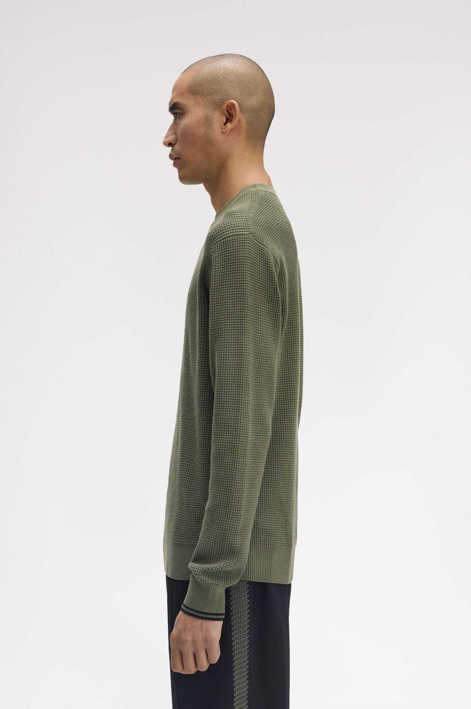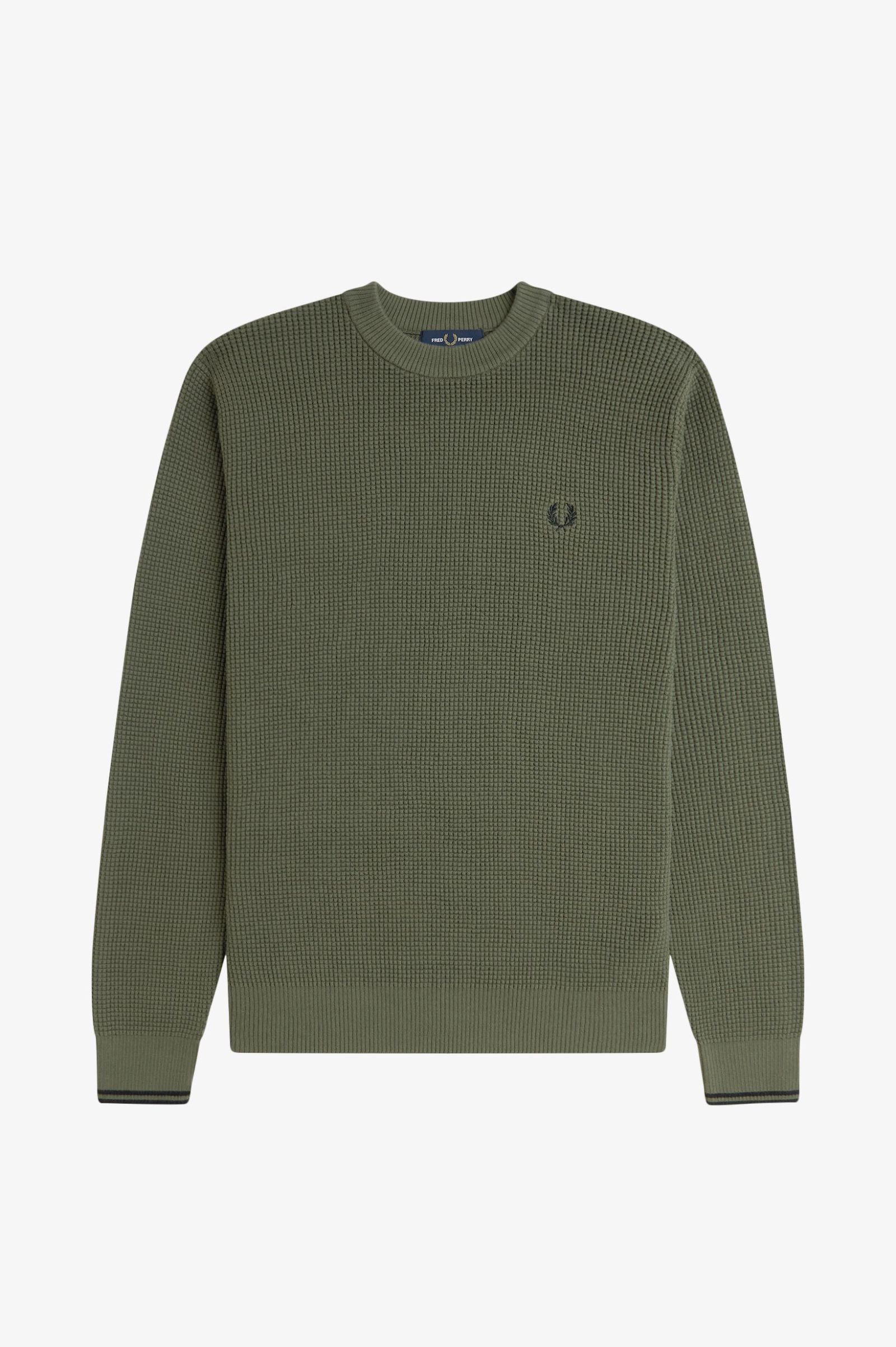 Fred Perry Waffle Stitch Jumper Laurel Wreath Green